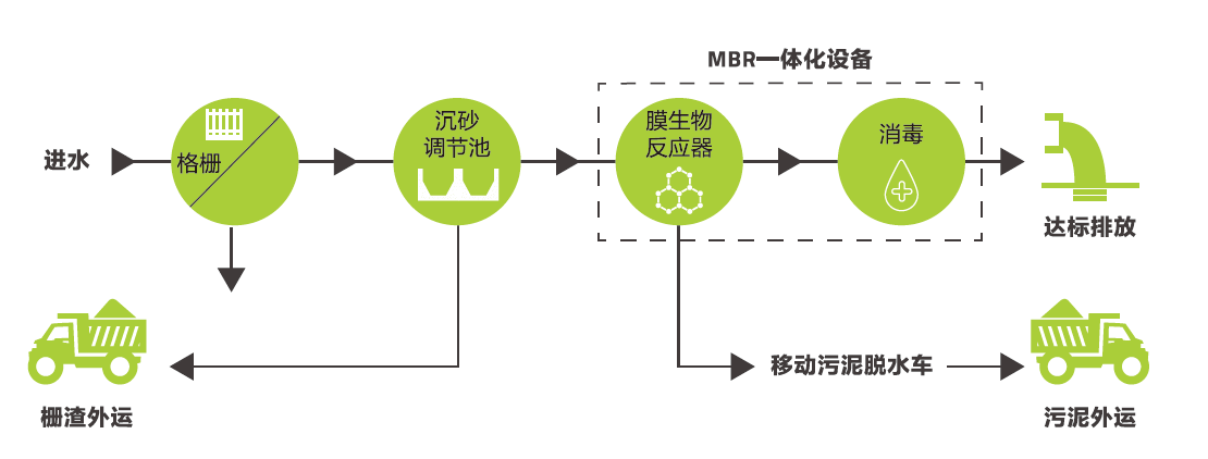 预处理+MBR+膜处理工艺